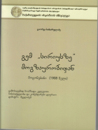 გემ "სირიუსზე" მოგზაურობიდან : მოგონებანი (1908 წელი) / გამოსაცემად მოამზადა, კვლევითი წინასიტყვაობა და კომენტარები დაურთო დიმიტრი შველიძემ ; რედაქტორი თენგიზ სიმაშვილი ; ივანე ჯავახიშვილის სახ. თბილისის სახელმწ. უნ-ტი, ჰუმანიტარულ მეცნიერებათა ფაკ-ტი, საქართველოს ისტორიის ინ-ტი.