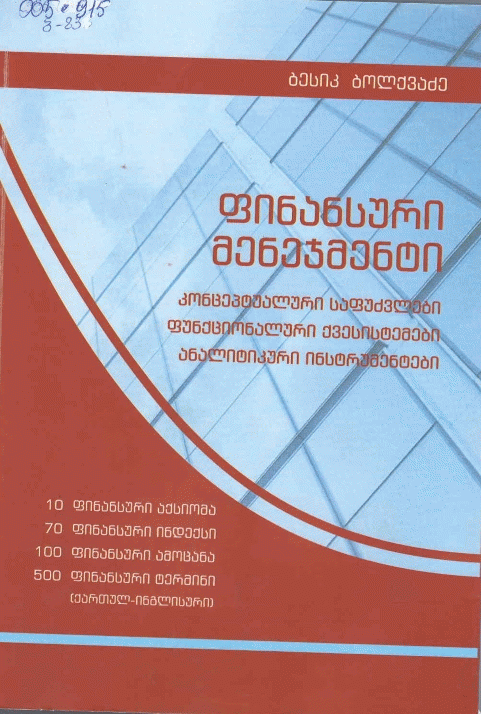 ფინანსური მენეჯმენტი : კონცეპტუალური საფუძვლები ფუნქციონალური ქვესისტემები ანალიტიკური ინსტრუმენტები : Financial Managment:Concpetual Fundamentals Functional Subsystems Analytical Tools /