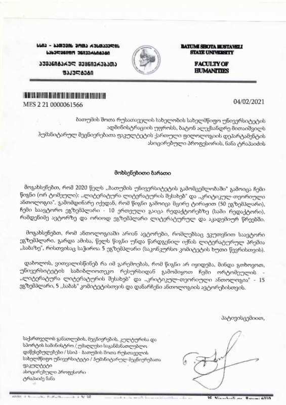 Batumi Shota Rustaveli State University : ბათუმის შოთა რუსთაველის სახელმწიფო უნივერსიტეტის ბიბლიოთეკა