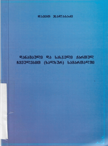დანაშაული და სასჯელი ქართულ ჩვეულებით (ხალხურ) სამართალში (ფშავის ჩვეულებითი სამართლის მიხედვით) /