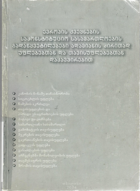 ევროპის ქვეყნების საკონსტიტუციო სასამართლოების გადაწყვეტილებები ადამიანის ძირითად უფლებებთან და თავისუფლებებთან დაკავშირებით