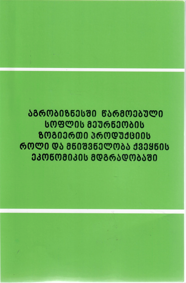 აგრობიზნესში წარმოებული სოფლის მეურნეობის ზოგიერთი პროდუქციის როლი და მნიშვნელობა ქვეყნის ეკონომიკის მდგრადობაში /