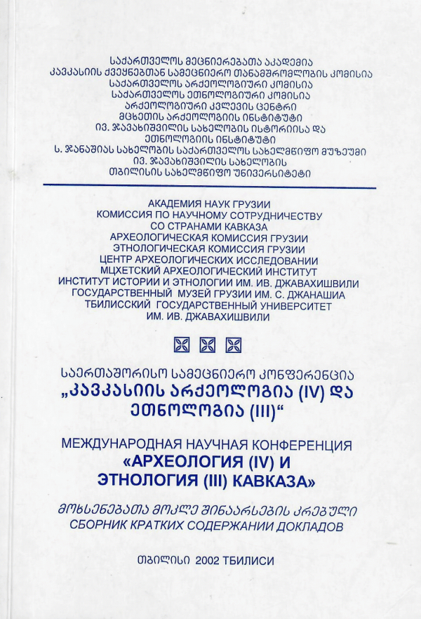 საერთაშორისო სამეცნიერო კონფერენცია ,, კავკასიის არქეოლოგია (IV) და ეთნოლოგია (III) " = Международная научная конференция ,, Археология (IV) и Этнологя (III) " : მოხსენებათა მოკლე შინაარსების კრებული /