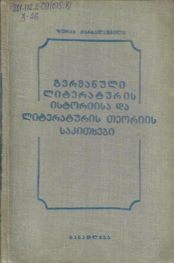 გერმანული ლიტერატურის ისტორიისა და ლიტერატურის თეორიის საკითხები :