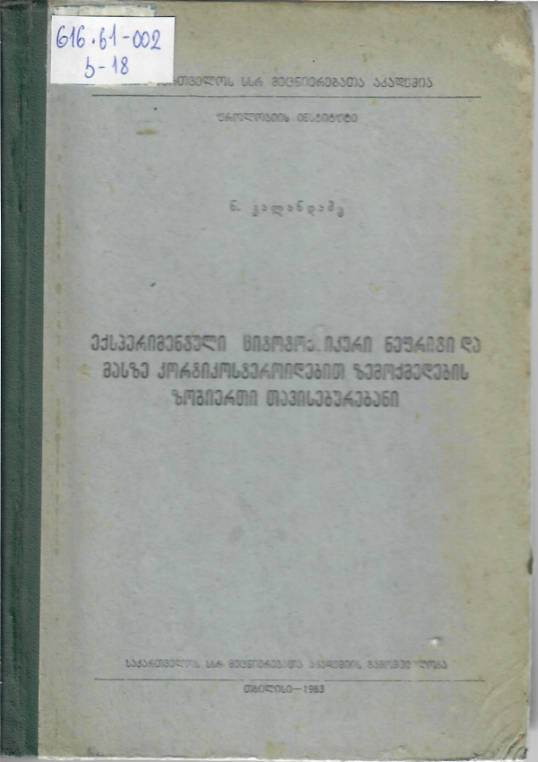ექსპერიმენტული ციტოტოქსიკური ნეფრიტი და მასზე კორტიკოსტერიოდებით ზემოქმედების ზოგიერთი თავისებურებანი /