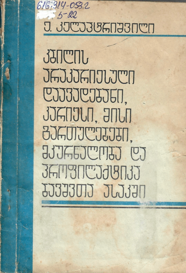 კბილის არაკარიესული დავადებანი, კარიესი, მისი გართულებანი, მკურნალობა და პროფილაქტიკა ბავშვთა ასაკში /