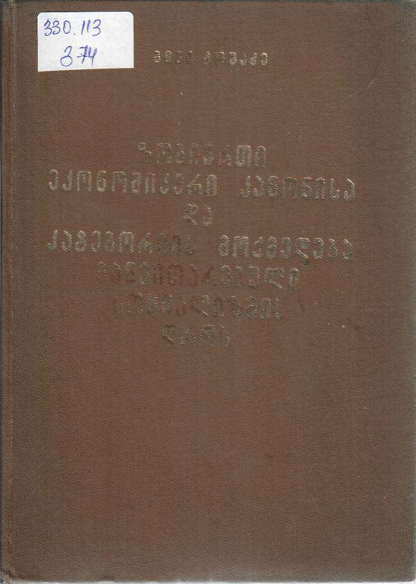 ზოგიერთი ეკონომიკური კანონისა და კატეგორიის მოქმედება განვითარებული სოციალიზმის დროს /